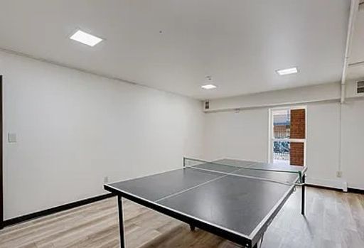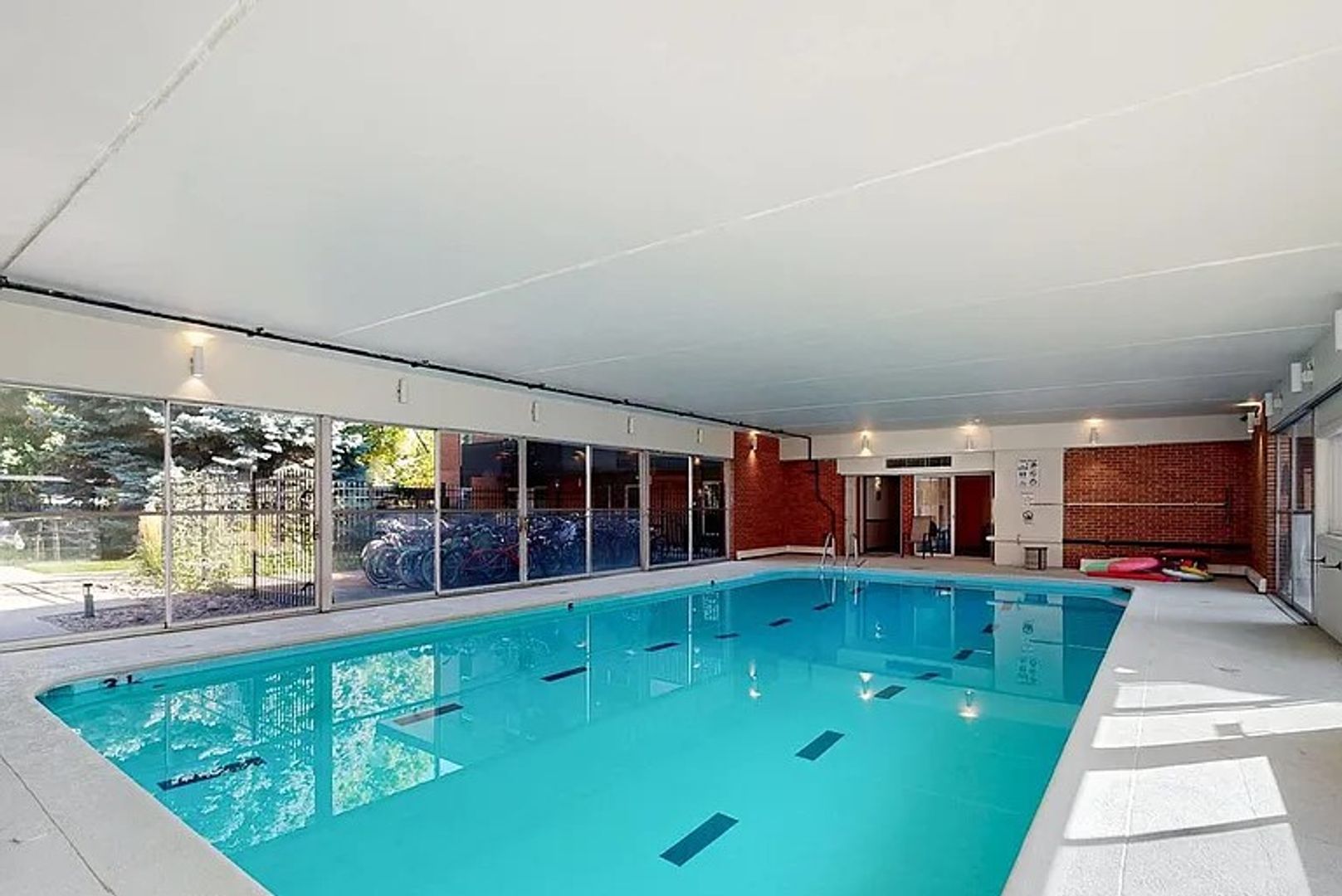 Residents enjoy secure building entry and shared laundry facilities, along with an impressive collection of amenities including a swimming pool, sauna, and recreation rooms with a pool table and ping pong.